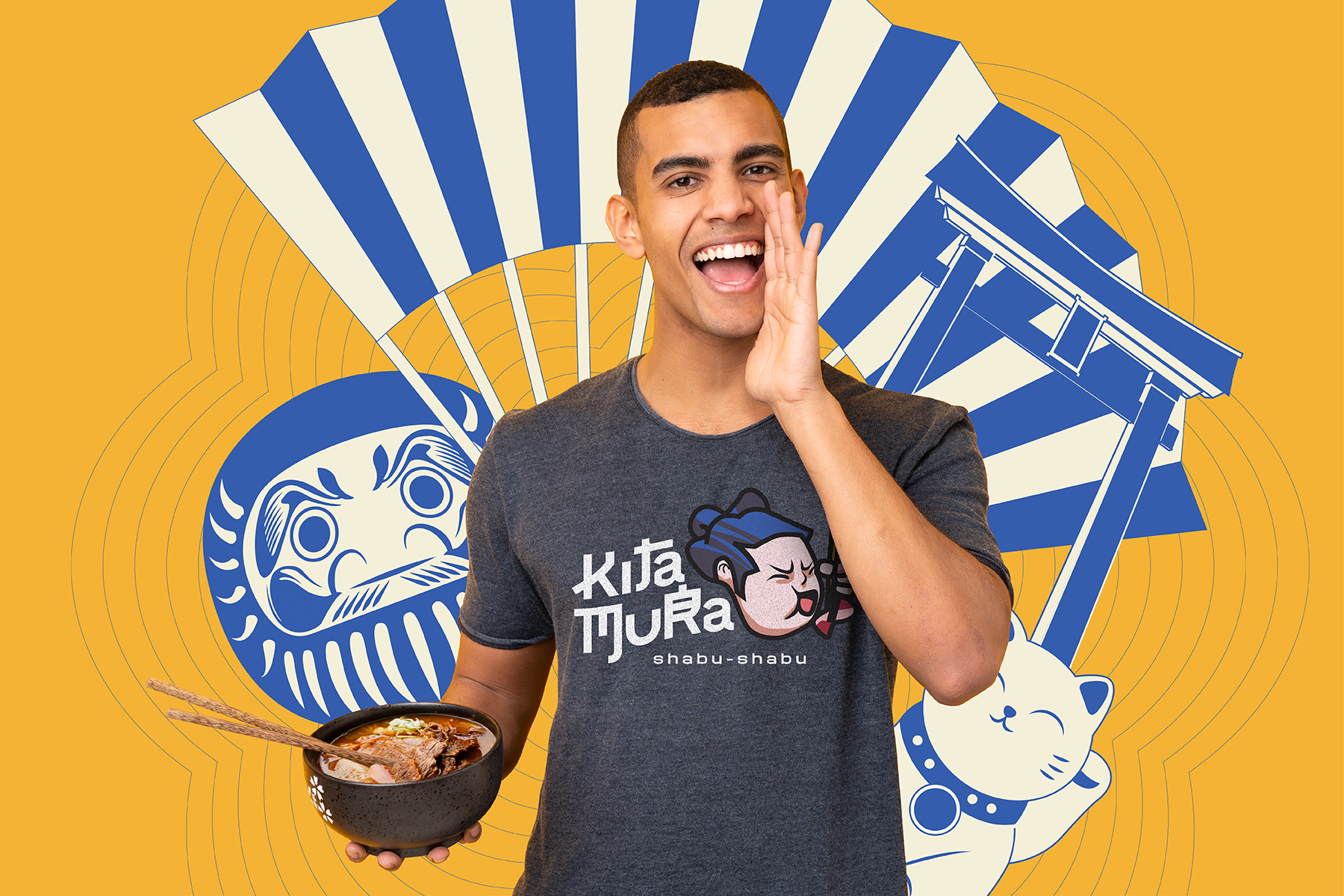 We extended Kitamura’s playfulness across its visual identity by visualizing the brand as a man who loves eating shabu-shabu. To push the identity further, several personalized Japanese kanji characters were then combined into the logotype, which serves as a connection for the dishes’ origin. With Kitamura’s breakthroughs, now people can enjoy Japanese shabu-shabu experience even on common occasions. And that’s what Kitamura is all about: bringing a new trend in savoring affordable shabu-shabu.